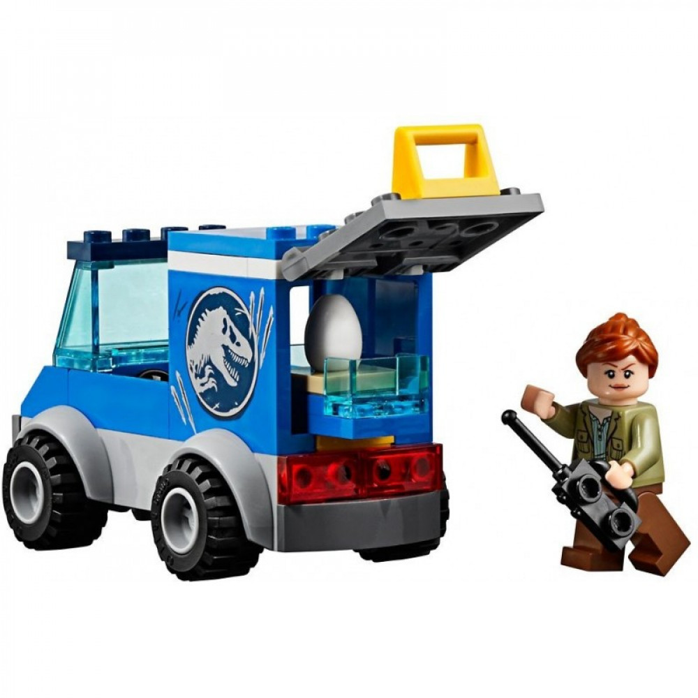 Также в набор входят: компактный фургон (6х9х4 см.); 3 минифигурки людей и 2 минифигурки динозавров (Ти-Рекс и его детёныш).